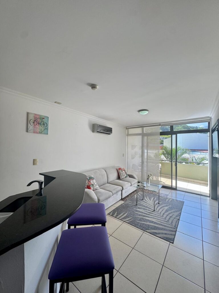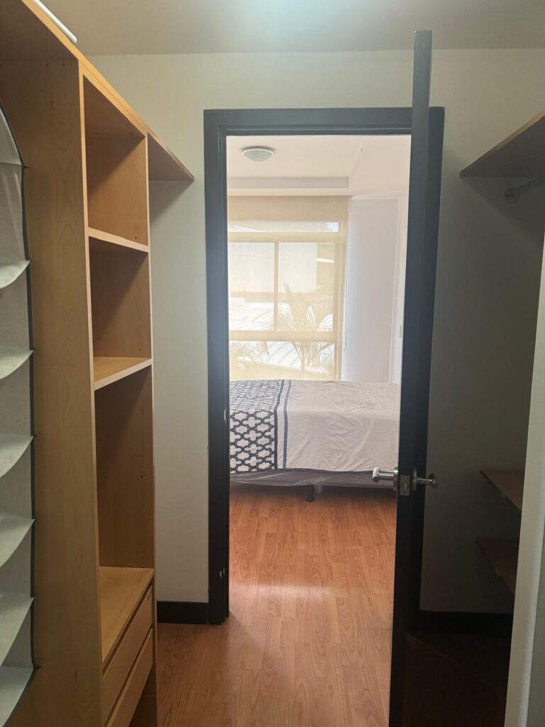 1 dormitorio con walk in closet, 1 baño completo, cocina con mueble y sobres de granito, sala de estar, área de lavado y parqueo para 1 vehículo.