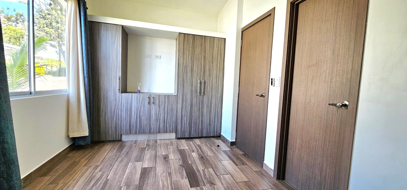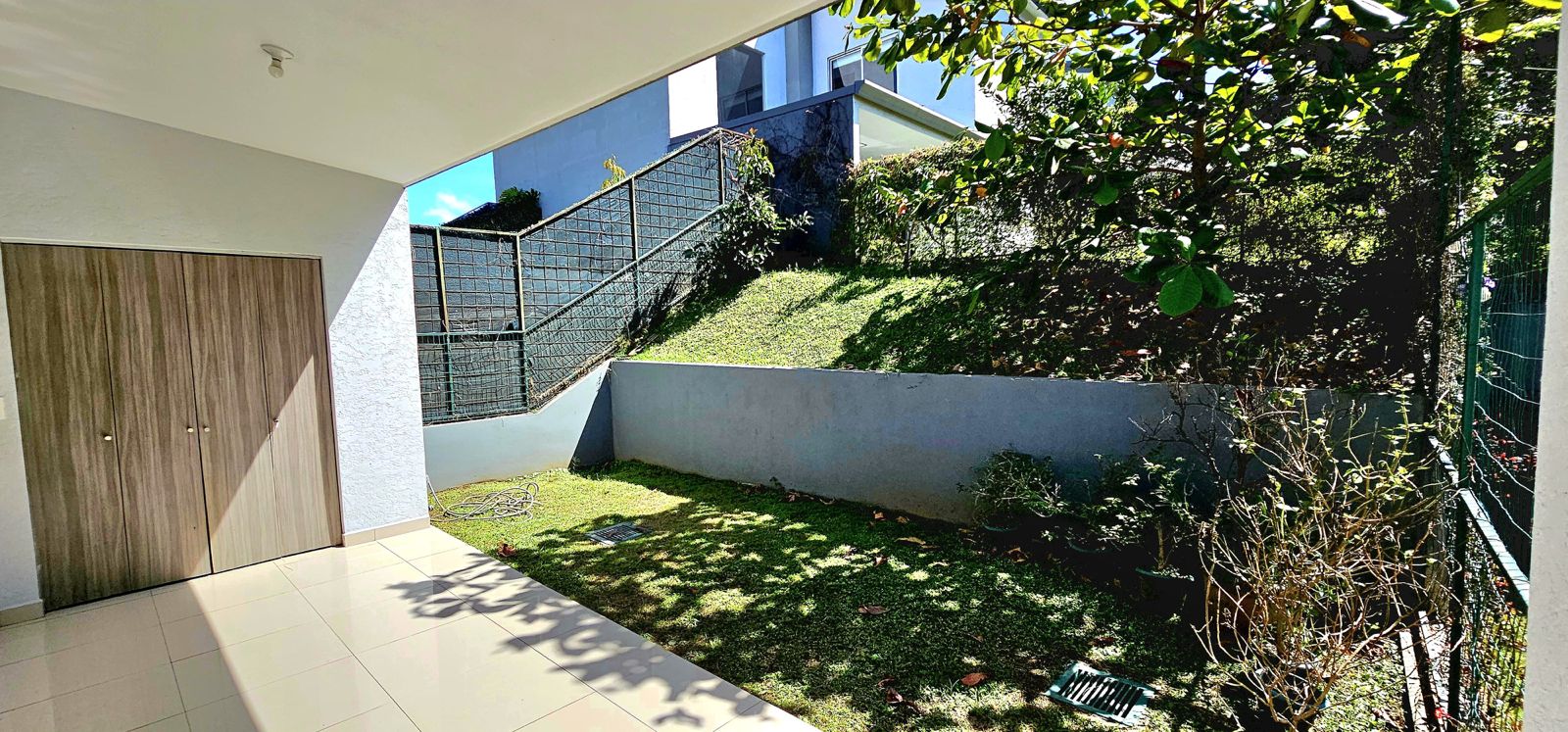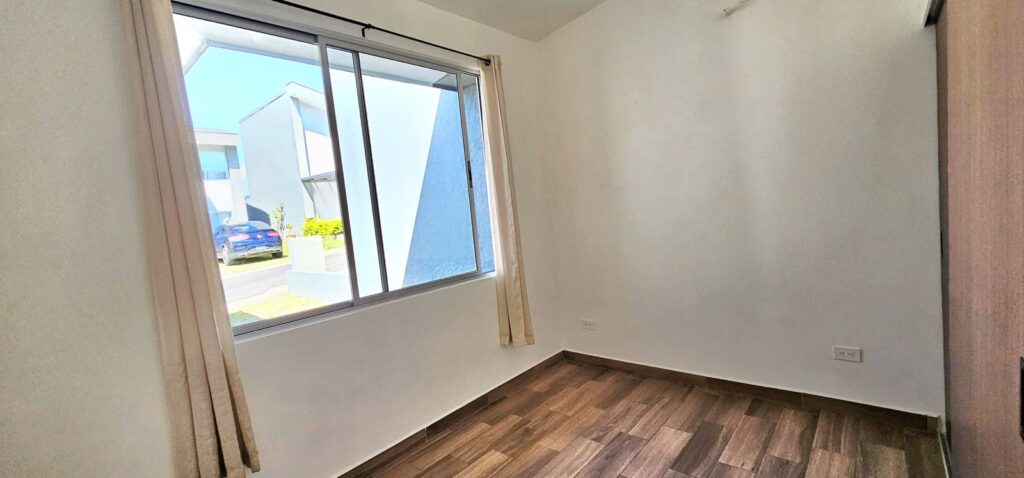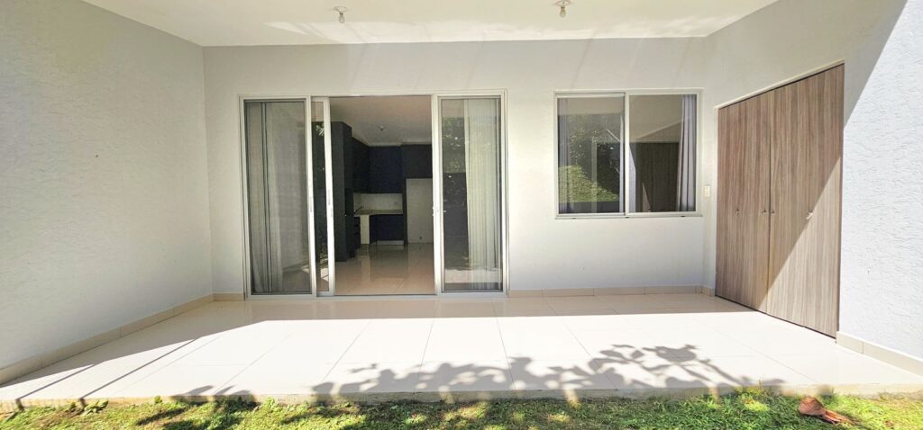 3 habitaciones con closet, 2 baños completos, sala de comedor y estar, cocina con mueble y sobre de cuarzo, área de lavado, patio enzacatado y cochera para 2 carros.