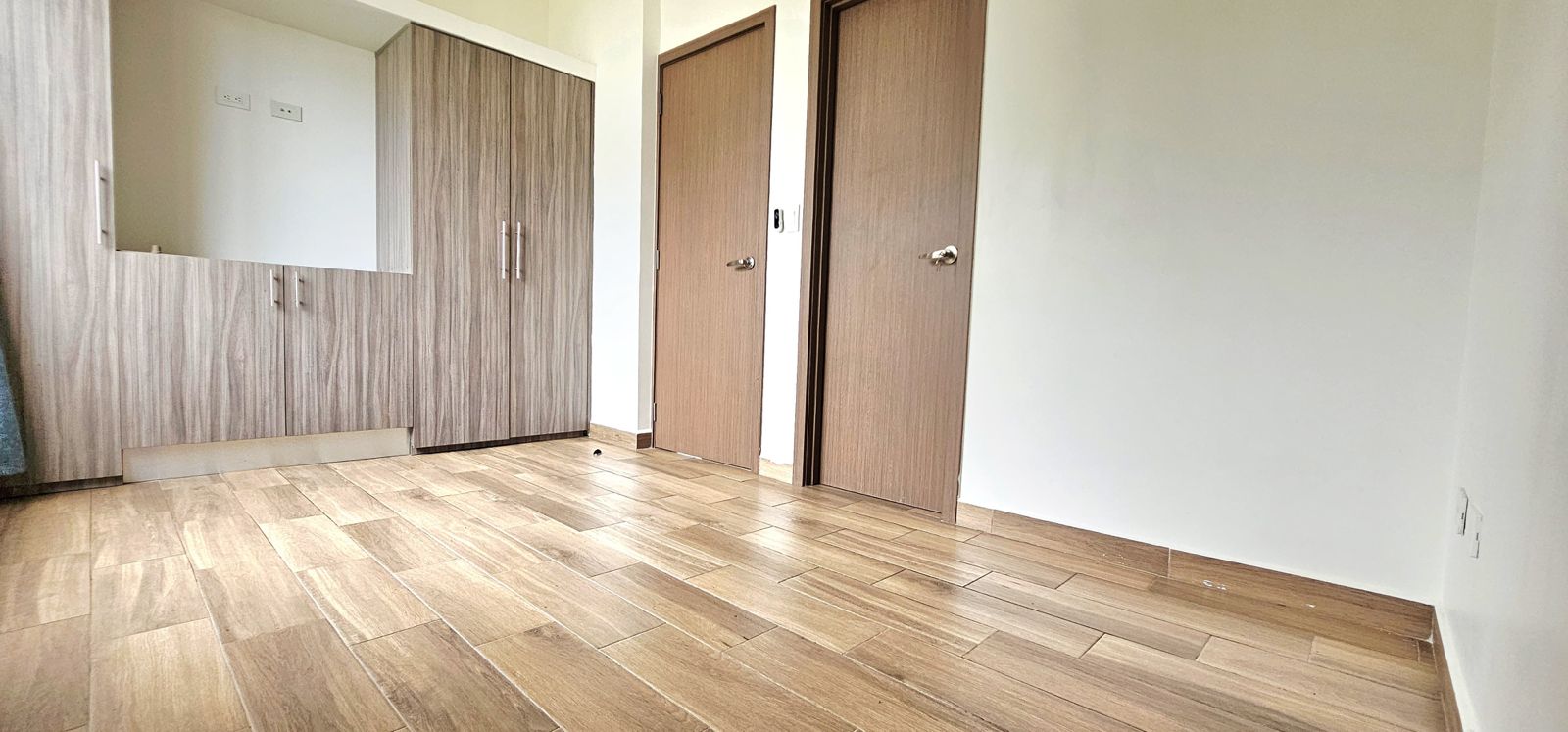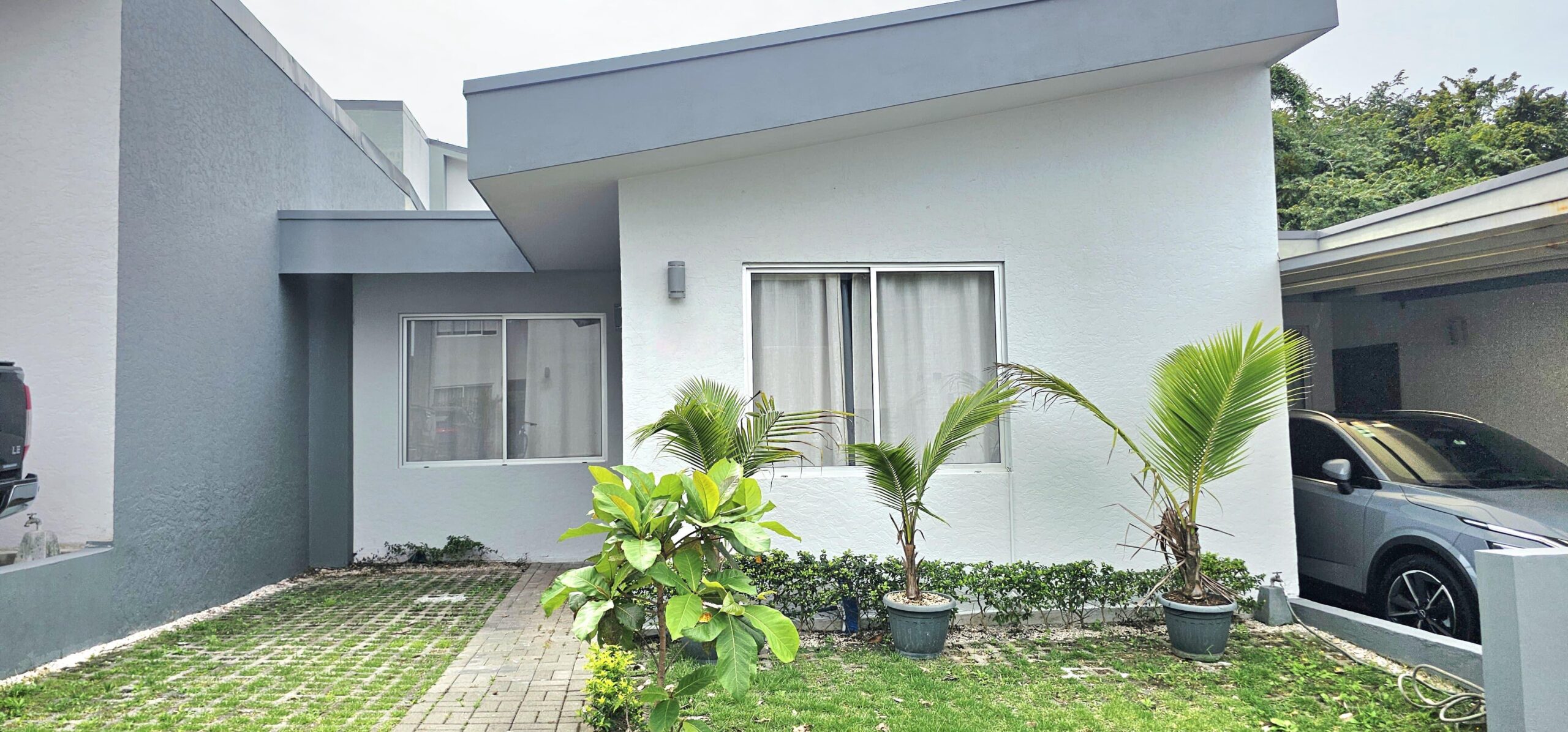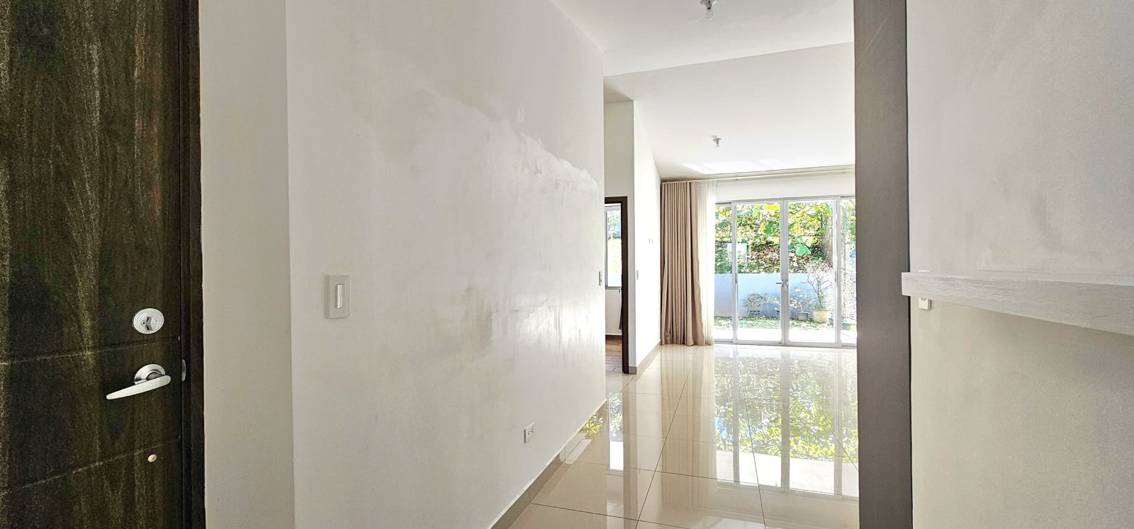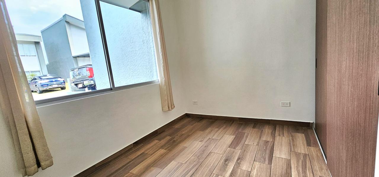 3 habitaciones con closet, 2 baños completos, sala de comedor y estar, cocina con mueble y sobre de cuarzo, área de lavado, patio enzacatado y cochera para 2 carros.