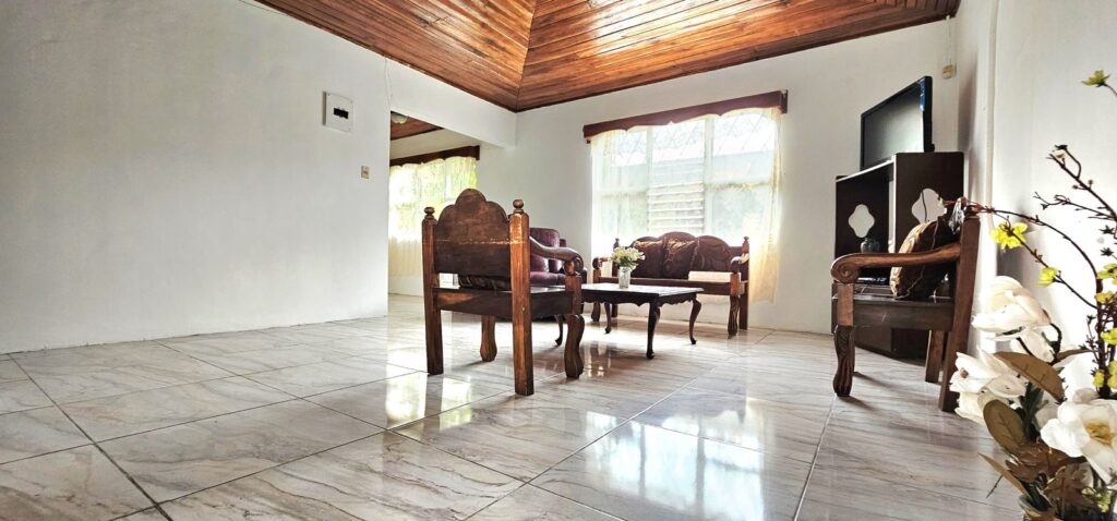 La casa cuenta con 3 dormitorios, 2 baños completos, sala comedor y estar, cocina, cuarto de pilas y cochera para 2 carros.