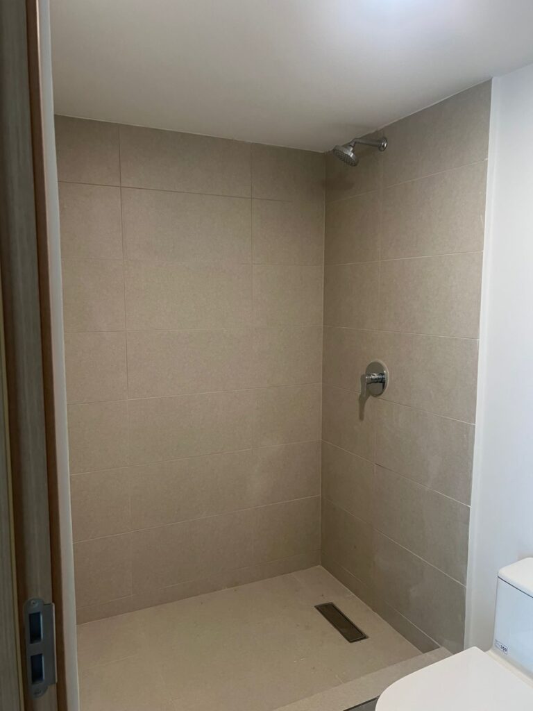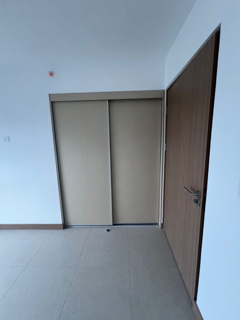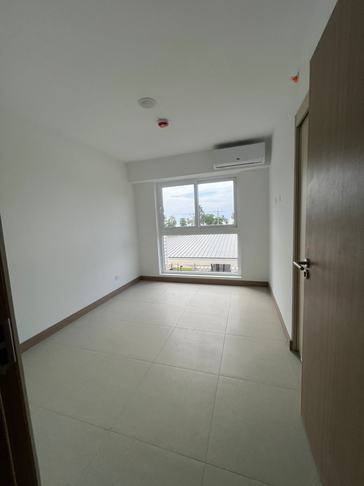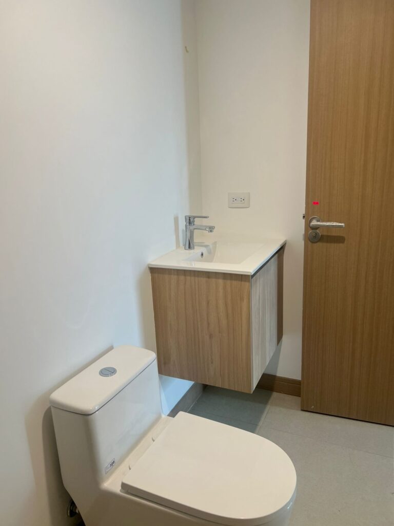2 habitaciones con closets, 1 baño, sala de comedor y estar, cocina con mueble y sobre de cuarzo, bodega, área de lavado, balcón y 1 garaje.