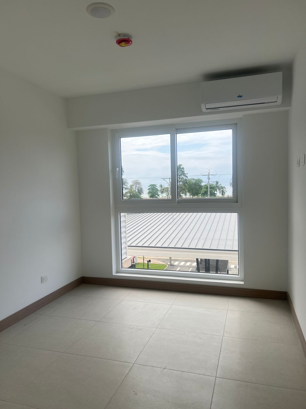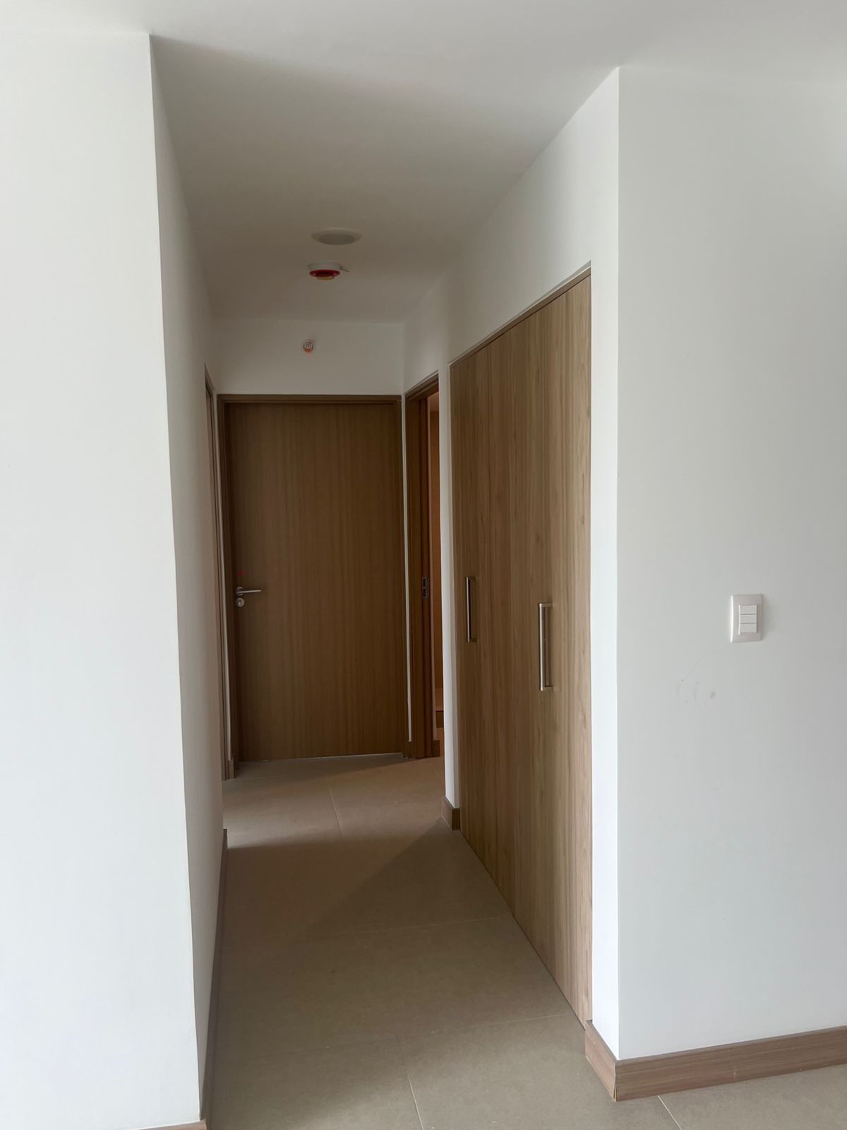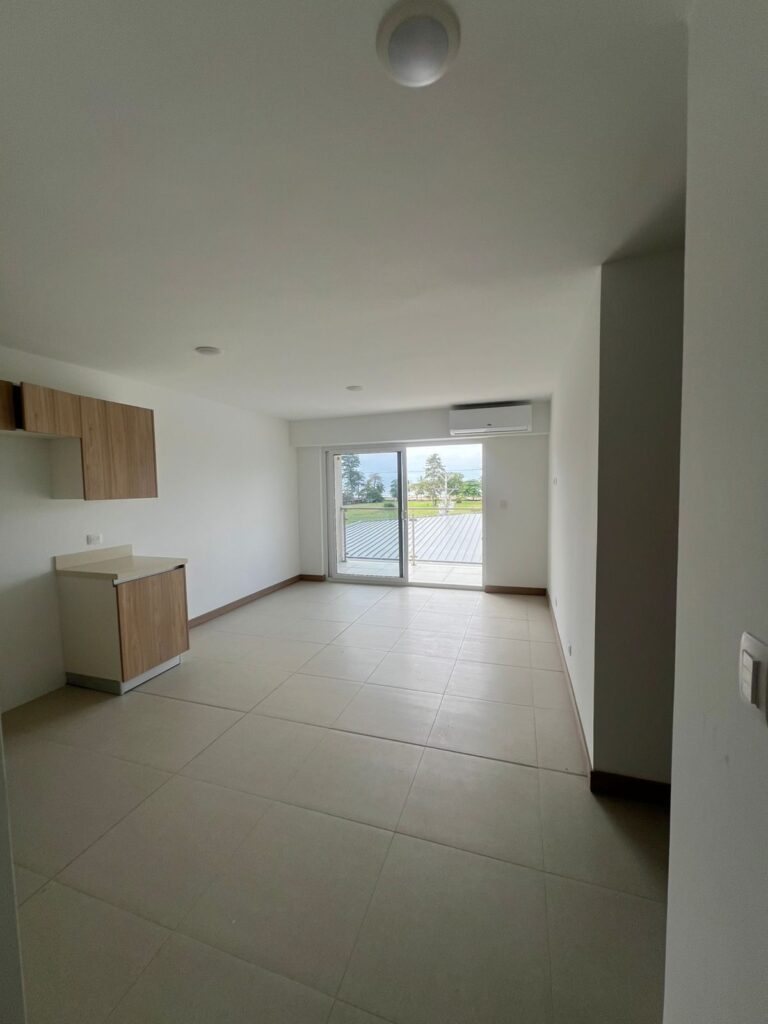 2 habitaciones con closets, 1 baño, sala de comedor y estar, cocina con mueble y sobre de cuarzo, bodega, área de lavado, balcón y 1 garaje.