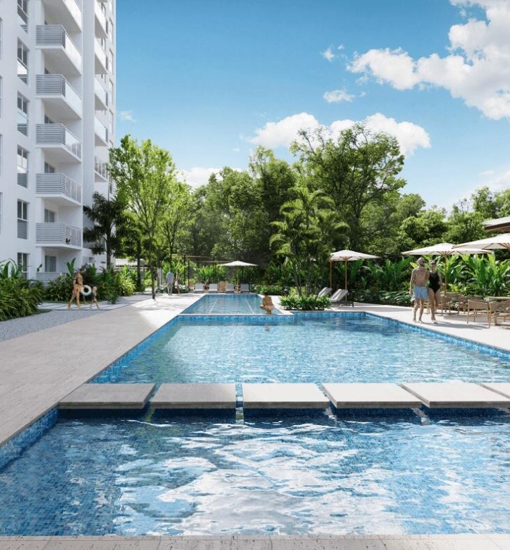 Amenidades: Piscina, áreas verdes, rancho BBQ y actividades, área de niños y área de mascotas, sala de reuniones, sala de juegos, senderos y recepción.