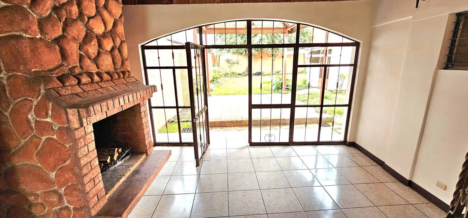 5 dormitorios, 3.5 baños, cocina, oficina, sala de comedor y sala de estar con chimenea, sala de TV, patio con zacate natural, área de lavado, bodega y cochera para 3 vehículos grandes con portón eléctrico.