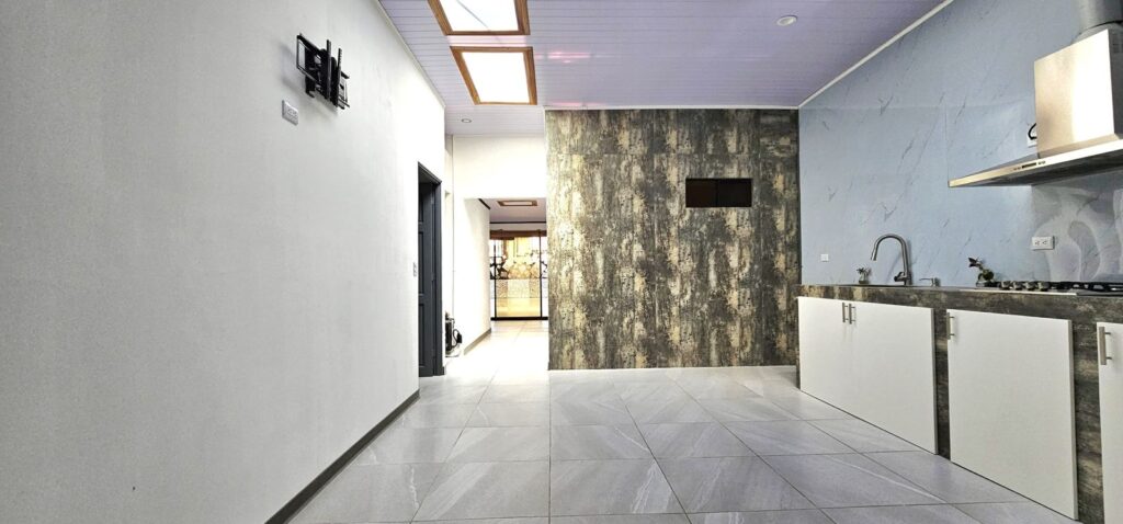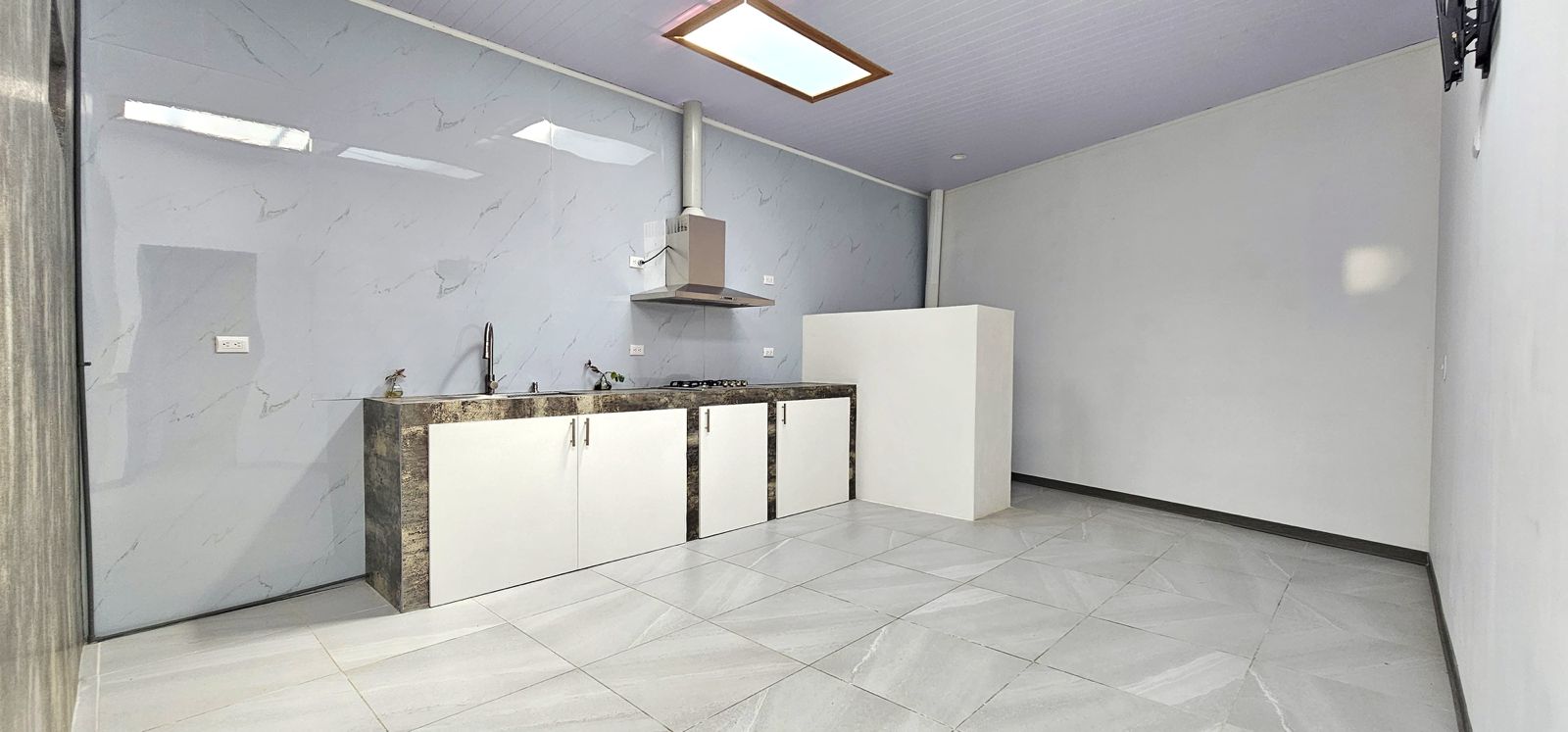 Cuenta con 3 dormitorios con closet, 3 baños completos, amplia cocina con mueble y sobres en cuarzo, área de lavado y cochera para 4 vehículos bajo techo.