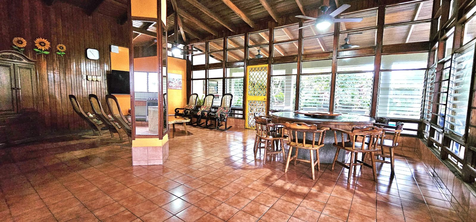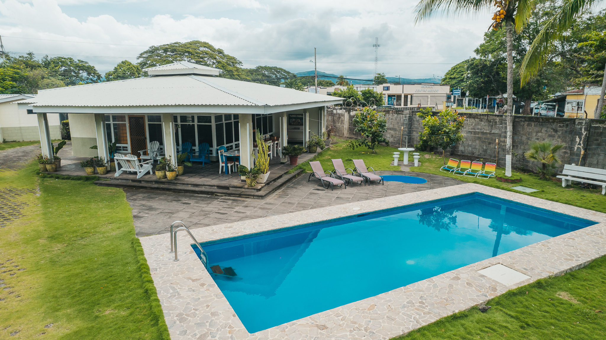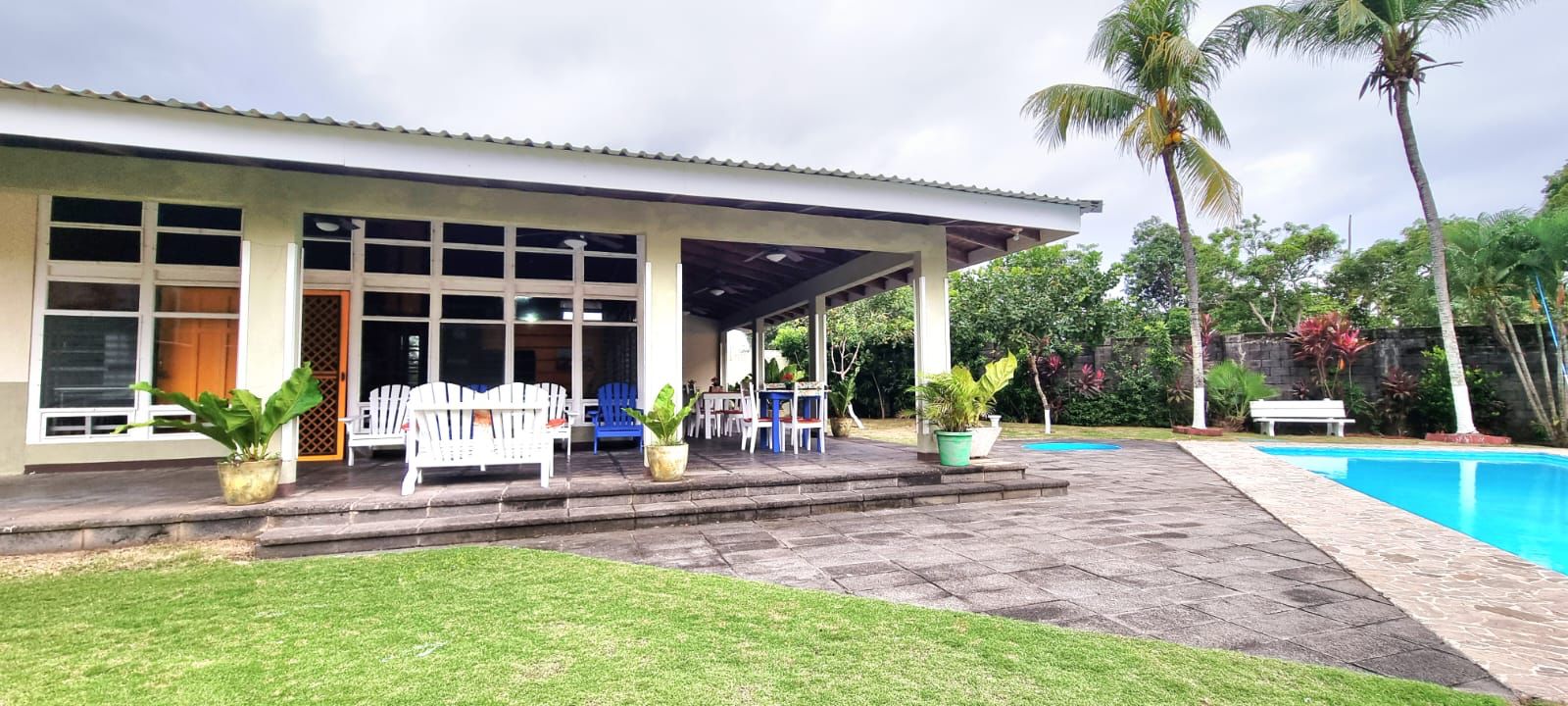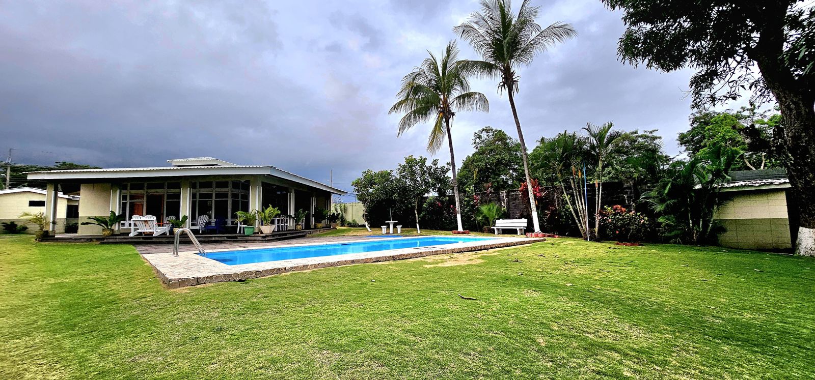 Consta de 5 habitaciones principal con baño propio y walk in closet (todas las habitaciones con aire acondicionado), además cuenta con 4 baños, piscina, cocina, sala de estar, sala de TV, área de lavado y cochera para 6 carros.